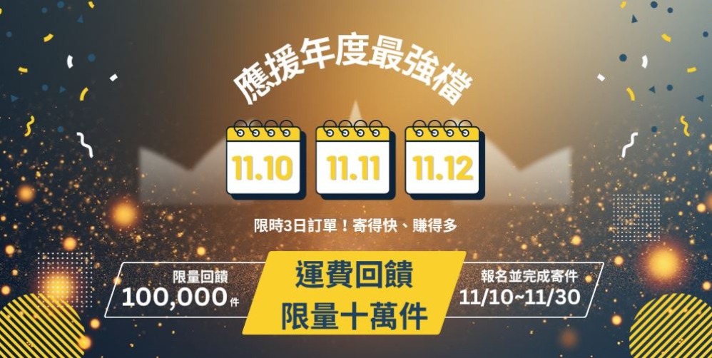 應援年度最強檔,限量免運報名中:11/10~11/12成立訂單、11/30前寄件